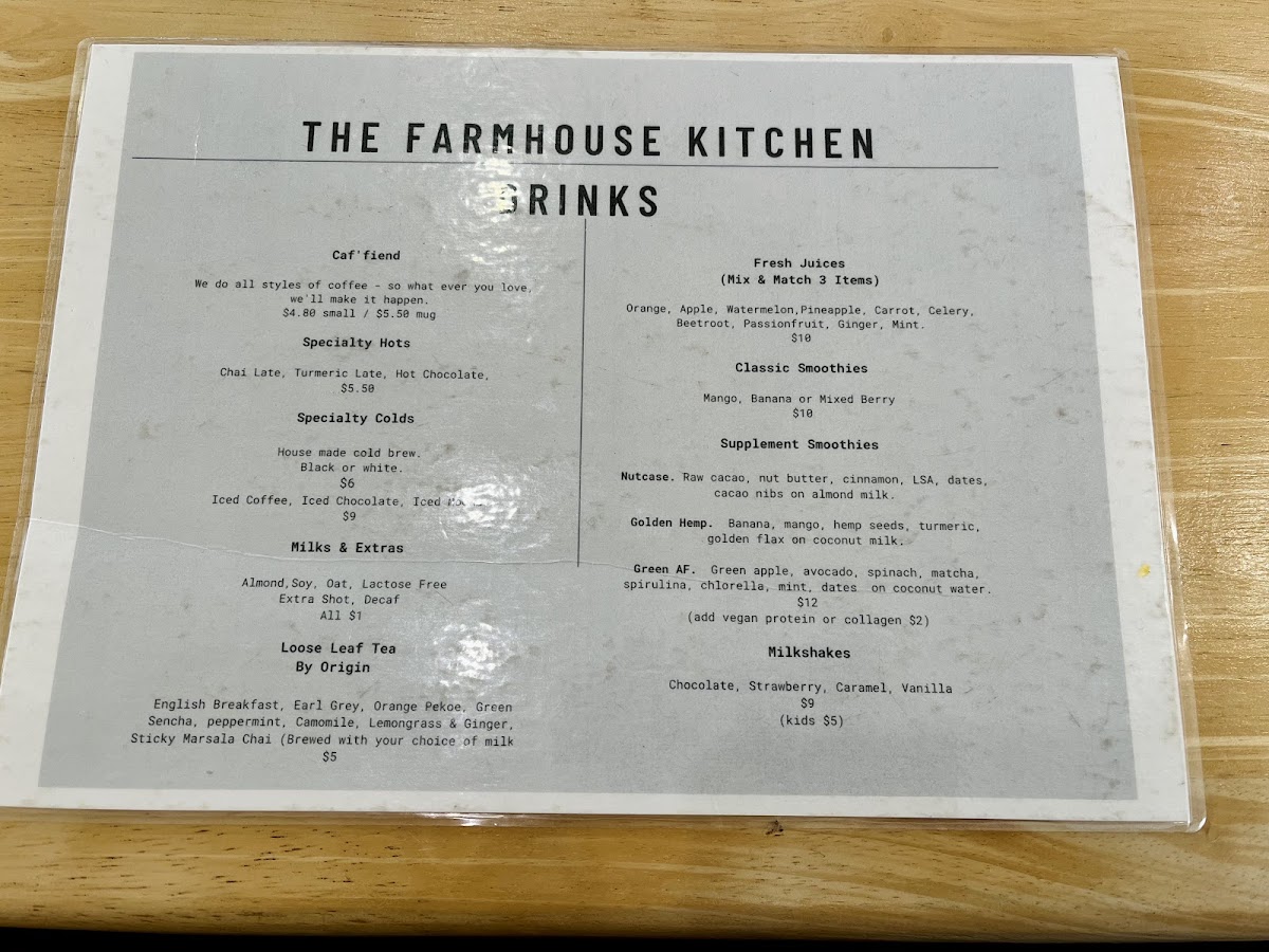 The menu at The Farmhouse Kitchen Malanda offers a selection of café-style food and beverages suitable for breakfast, coffee breaks, and light meals. Visitors can find a range of hot and cold drinks, including coffee and fresh juices or smoothies. The food options feature breakfast items and casual dishes that cater to various tastes.